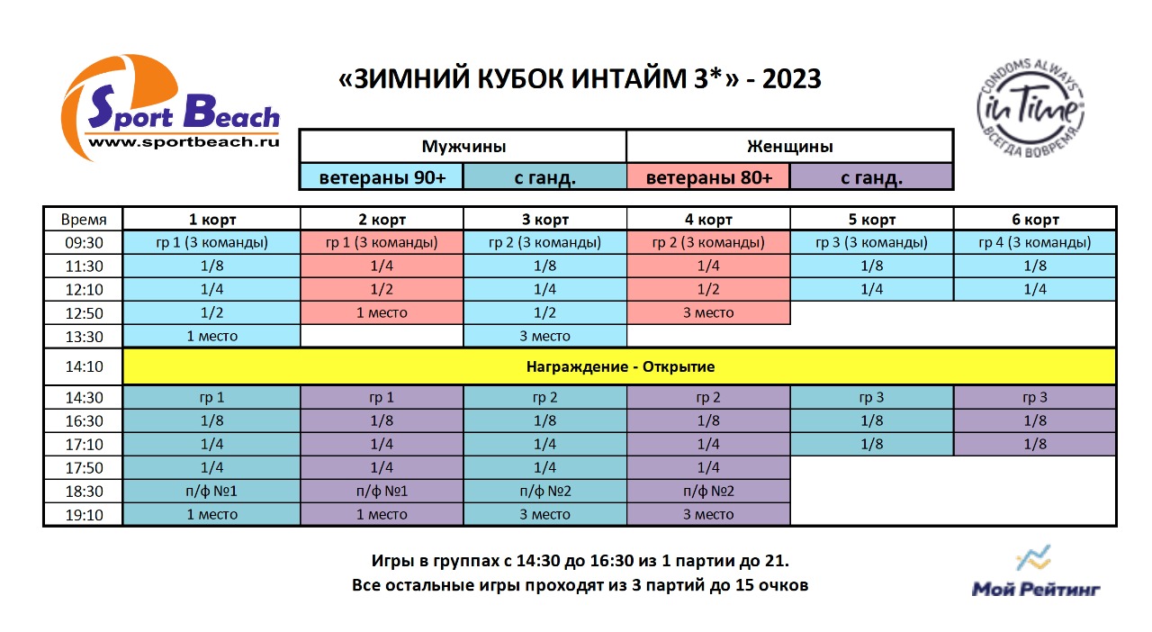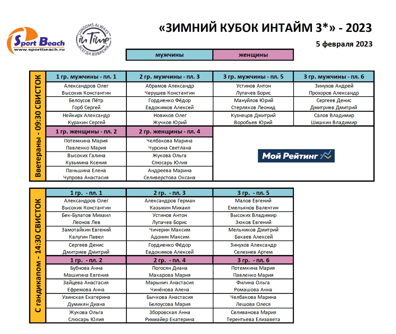 Два турнира: С утра 90+ мужчины и 80+ женщины (на команду по г.р.). С обеда с гандикапом мойрейтинг для всех желающих.